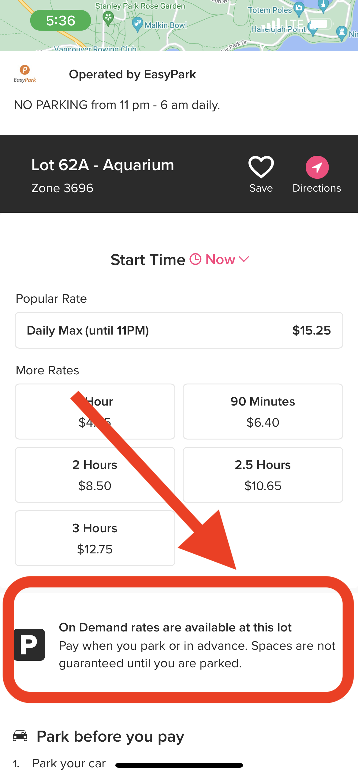 Zones marked 'On Demand' are first come first served, but can still be paid for in advance. That's all it is at that point however, a pre-payment and not an actual reservation. If you have purchased in advance and there are no available spaces upon your arrival to the parking zone, please email us within the first ~10 minutes of the session start, and we will be happy to refund your transaction.